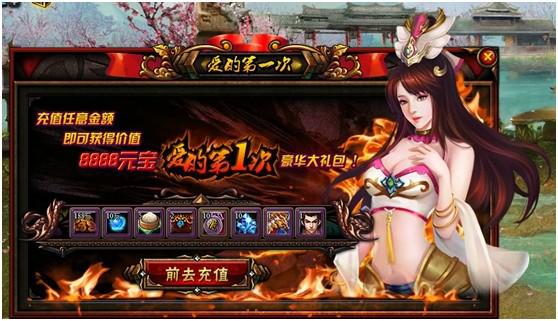 活动介绍:充值任意金额,即可获得价值8888元宝爱的第一次豪华大礼包