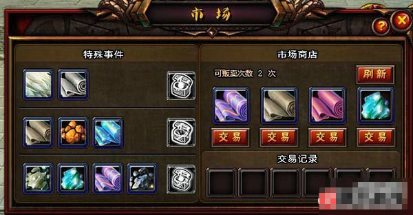 点击右边的交易,即可交易货物。当然这只是简单的操作,在左边玩家们能够看到特殊事件,很简单,如果玩家们在交易的过程中,交易的物品和左边的特殊事件的物品是一样的话,就能够触发特殊事件了: